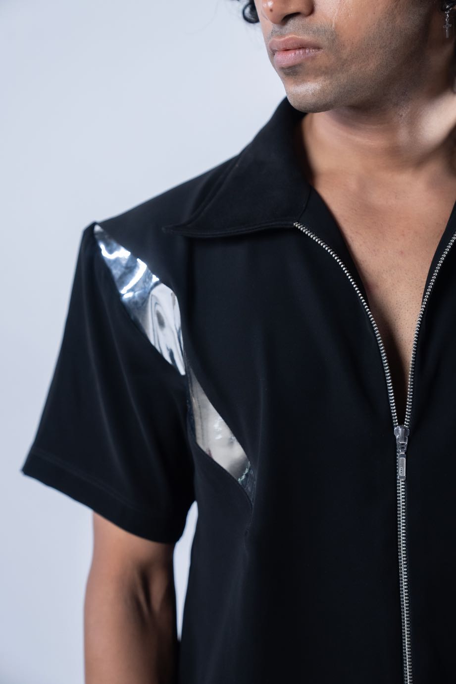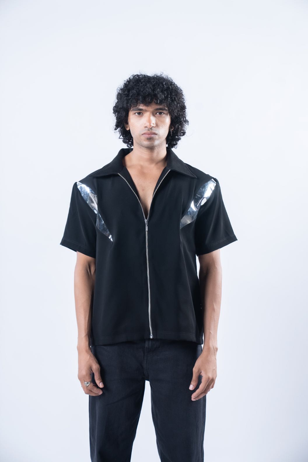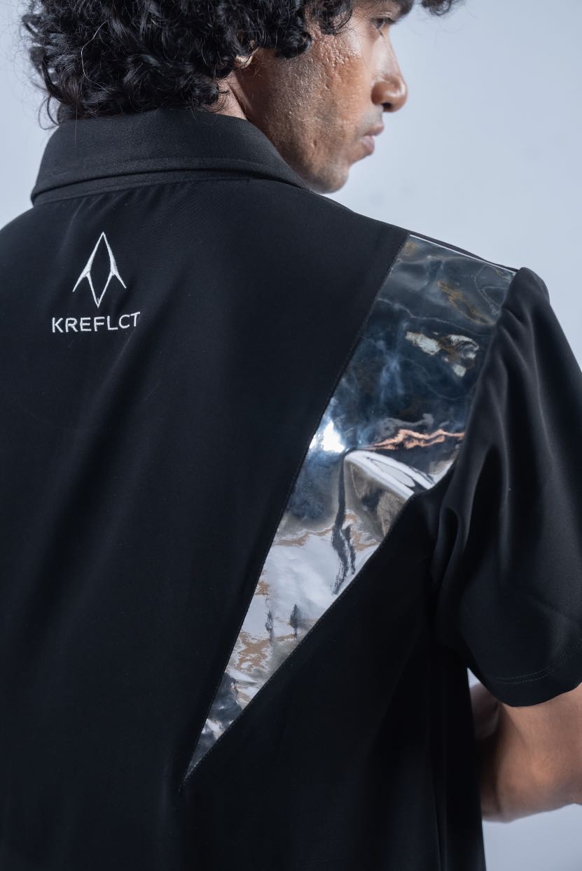 Introducing Kreflctโs Rager Shacket crafted from a soft and lustrous fabric. Built around sharp silver detailing it features a vegan suede collar that brings a polished touch to the look. The stylized detailing reflected in the structure, ensures that this jacket stands out as a must-have.